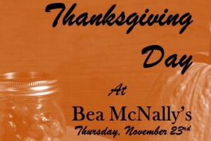 Bea McNally's is offering a fixed price, four-course Thanksgiving dinner, featuring turkey or ham and all the trimmings. Click here for more details. $35 per person and children 12 and under are $13. Call for reservations at 908-813-1900.