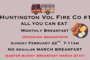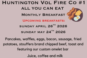Pancakes, waffles, eggs, bacon, sausage, fried potatoes and more at Huntington Volunteer Fire Company's monthly all you can eat breakfast!
