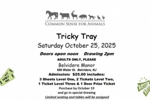 Taking place at Belvidere Manor comes a fundraiser for Common Sense for Animals. An admission of $25 gets you 3 sheets of Level 1, 2 sheets of Level 2, 1 sheet of Level 3 and a door prize ticket. Bring 5 cans of cat or kitten food or 5 cans of puppy and dog food and get an extra Level 1 sheet.