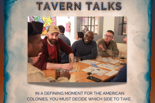 Attendees are invited to imagine that you are in a colonial tavern. Neighbors, family, and friends with conflicting ideologies are all around you. In a defining moment for the American colonies, you must decide which side to take. You might find that the past is closer than you think!