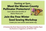The Hope Creative Team encourages you spend the evening in the village shopping, supporting local eateries, playing games, and socializing! The Community Center will have "good luck" soup, hot chocolate and tea. January features the Warren County Pollinator Protectors hosts a free workshop on starting your own winter seed sowing project.