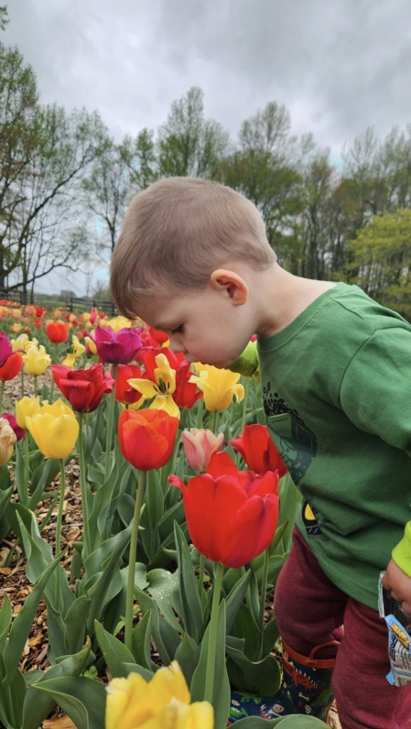 We’re in love with our cover photo! This little guy is taking in the essence of fresh tulips, getting ready for Tulip Festival Weekends at Von Thun Farms in Washington starting April 18!