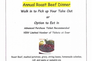 Belvidere UMC is offering a roast beef dinner complete with mashed potatoes, gravy, string beans, homemade coleslaw, roll and apple or pumpkin pie. Take out or Eat In.