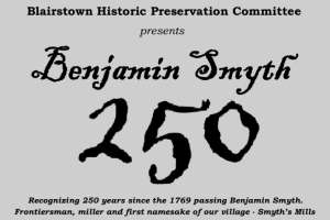 The Blairstown Historic Preservation Committee commemorates the 250th anniversary of Benjamin Smyth's death in 1769. Mr. Smyth is the earliest namesake of Blairstown when the village was called Smyth's Mills circa 1755 to 1795. The following exhibits and talks are available to learn more about the life and times of Benjamin Smyth. Benjamin Smyth exhibit at the Catherine Dickson Hofman Library, 4 Lambert Road, Blairstown, NJ 07825. The exhibit is currently on display and will run until the end of July. After July, the display can then be found in the BHPC exhibit space in the lobby of the Blairstown Municipal Building, 106 Route 94, Blairstown, NJ 07825 and will remain through the end of 2019. Meet outside the Blairstown Post Office, 39 Main Street, Blairstown, NJ 07825. The group will then move up the hill to the cemetery and the gravesite of Benjamin Smyth. Expect the talk and memorial to take about one hour. Parking is available in three locations: on Main Street; behind the Presbyterian Church at 1 Main Street; or at Footbridge Park. The event is free and will be held rain or shine, however it is suggested to check the Blairstown, NJ Historic Preservation Committee Facebook page in case of severe weather. Attendees should wear sturdy footwear for the short climb and for stability through the uneven cemetery grounds. No reservations are necessary, however the tour will be limited to forty people on a first-come, first-served basis. Please sign in on arrival at the post office.