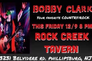 Friday, December 9, 2016 - 8:00pm Country recording artist and songwriter Bobby Clark "Plays it Hard" at Rock Creek Tavern! Website