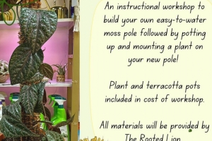 This is the first class being held at The Rooted Lion and for $45 a person with all the materials, you can make your own moss pole! Reserve your spot through the website link.