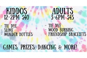 Beat the heat and come get creative at Propagate Studio! The kids session will be from 12-2pm and includes tie dye, slime and wonder bottles! The adult session will be from 3-6pm and includes tie dye, wood burning and friendship bracelets!