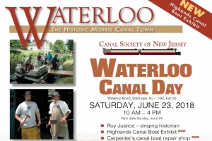 The Canal Society of New Jersey offers a wide range of programming at Waterloo Village this year including the new Highlands Canal Boat Exhibit featuring the recently discovered remains of what may be the last Morris Canal Boat. Some of the historic buildings will be open, historic trades & crafts will be demonstrated, and there will be canal boat rides. Singing Historian Roy Justice will appear June 23.