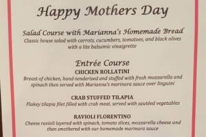 Sunday, May 13, 2018 - 12:00pm to 5:00pm Celebrate Mother's Day at Marianna's! Let them take care of the cooking while you celebrate with Mom. Reservations are strongly suggested. Call 908-777-3500. Website