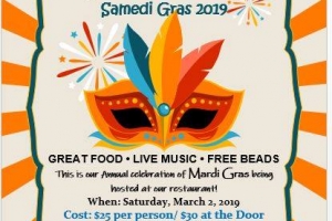 Celebrate Mardi Gras with lots of food like jambalaya, crawfish fresh from New Orleans, fried chicken, cornbread, collards and more. Also, live music from C3 Jazz Combo, dancing and beads for all to enjoy! The cost is $25, which covers all you can eat and entertainment. There are a few seats left, please call 908-223-1698.