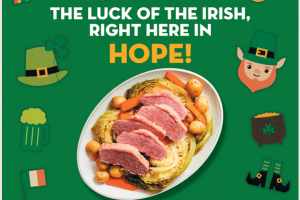 Support the town of Hope with the H.O.P.E. initiative aimed at restoring the Crusen and Cooper Houses, two historic homes in the center of town, with traditional St. Patrick's Day dinner at Community Center, complete with all the trimmings.