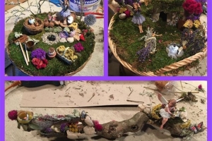 Using a basket or driftwood, choose a fairy to make a charming miniature fairy scene from moss, twigs, bark, and other unusual items. Bring your imagination!