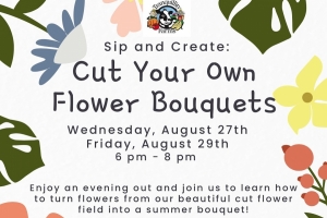 Enjoy an evening out and learn how to turn flowers from the field into a summer bouquet! $28/person includes flowers, tools, jar and instructions. BYO beverage and snacks.