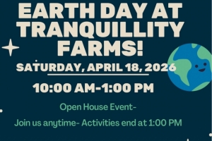 Spend a day at beautiful Tranquillity Farms for the Earth Day Open House, making a bird house, planting an egg carton greenhouse, eating ice cream, participating a scavenger hunt and more!