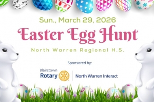 Sponsored by the Rotary Club of Blairstown and the North Warren Interact Club comes their annual Easter Egg Hunt. Bring your basket to North Warren Regional back fields for an Easter egg hunt and photos with the Easter Bunny.