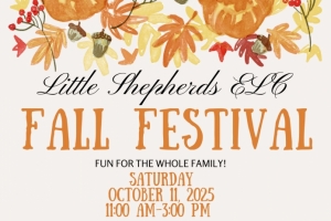 Enjoy games, local vendors, arts & crafts, pumpkin decorating, face painting, a photo booth and more at Little Shepherds Early Learning Community's annual Fall Festival! Food will be available for purchase, and tickets will be on sale for activities. Open to all!