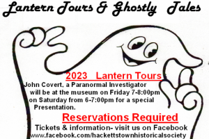 Come if you dare! Reservations required for a one-hour walking tour starting at the Hackettstown Historical Society Museum. Join John Covert, paranormal investigator, for a special presenation. Tours will be given Oct. 20 at 5:30pm, 8pm and 8:15pm amd Oct.21 at 4:30pm, 7pm and 7:15pm.