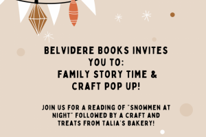 Belvidere Books - a new online business that plans to be an in-town presence in 2025 - invites the community to a pop-up event at the Community Center at Belvidere. The event includes story time reading of "Snowmen at Night" followed by crafts and baked goods provided by Talia's Bakery. Best of all? It's free! We hope to see you and your families there! To participate in the craft and snack, you must RSVP by Dec. 10 to belviderebooks@gmail.com.