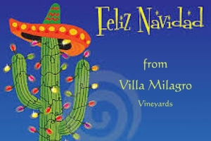 Experience an early California Christmas at the Villa. Luminarios will light the indoor cantina and outdoor pergola where traditional Mexican cookies - buñuelos - will be served with VMV holiday wines - Gracias, Feliz Navidad and Mi Carino. Take your selfie with a Christmas Cactus or with Pancho the wannabe reindeer! Receive a grapevine wreath with your purchase of two or more bottles and a gift wine tote with purchase of four or more bottles. $10 includes tasting, gift glass and buñuelos.