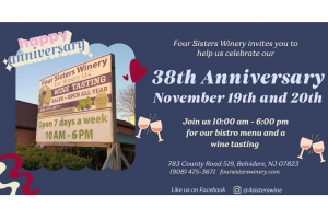 If you haven't visited Four Sisters Winery in Belvidere, this is the weekend as they celebrate 38 years! There will be anniversary discounts of 20% off case purchases and 10% off 1/2 cases purchases. Warmed Holiday Seasoned in a mug is $10 and wine by the glass or bottle. prices vary Bistro Menu - Wine Tasting Don't forget that we have personalized wine labels for the holidays and any occasion. Gift baskets adorn the winery and are perfect for any gift giving.