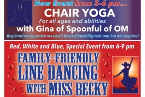 The Hope Creative Team encourages you spend the evening in the village shopping, supporting local eateries, playing games, with chair yoga and line dancing. Join friends an neighbors doing any/all of these things, and help plan the next Fun Friday!