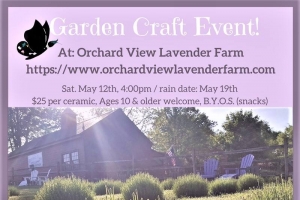Join Orchard View Lavender Farm for a Ceramic Painting Party! Paint and decorate ceramic flower pots and watering cans outside in their garden. Cost is $25 per person. Sign-up today!