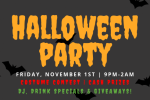Costume Contest with Cash Prizes for 1st, 2nd & 3rd place! DJ, Drink Specials & Giveaways!