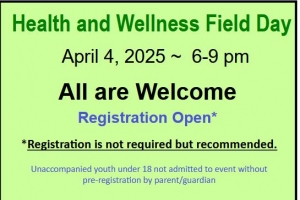 Friday, April 4, 2025 - 6:00pm to 9:00pm All are welcome to join in health and wellness field day with games, volleyball competition, free food, crafts, raffles and prizes. Website