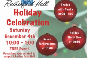 This free holiday event hosted by Rutherfurd Hall will include photos with Santa, arts and crafts, dance performances, cookie decorating and holiday music. Crafters are welcome to register for a space outside to give participants an opportunity to do some holiday shopping. You may register for a spot for $50 ($60 if you need a table provided). Set up will start at 9. Please email info@rutherfurdhall.org if you have any questions.