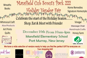 Mansfield Cub Scout Pack 222 hosts its 3rd annual Holiday Vendor Fair! Come on out and do some early holiday shopping from a wide variety of vendors ready to help you find the perfect gift for everyone on your list.