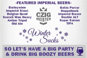Winter Sucks. So bundle up, grab a few friends, and come drink big boozy beers with us! We're taking over our taps once again, this time with high ABV beers that'll warm you right to the core. We'll even break out the good ole' jockey boxes and pour special brews out in the biergarten. It'll be the perfect day to crank up the patio heaters and embrace whatever Mother Nature has to offer!