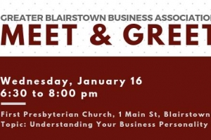 Local businesses owners in Blairstown, Hope, Knowlton, Columbia and Hardwick are welcome to attend to learn more about joining the GBBA. This month's meeting will be hosted by First Presbyterian Church. We'll be exploring business development through a personality profile, as led by Keith VanDerzee and Dave Tillisch.