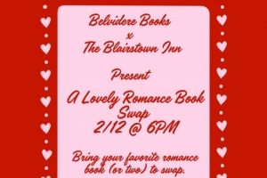 Belvidere Books is partnering with The Blairstown Inn for romance book swap. The BTI will be providing Galentine’s Day drinks, snacks, and desserts for attendees, and the bookstore will have gifts for everyone.