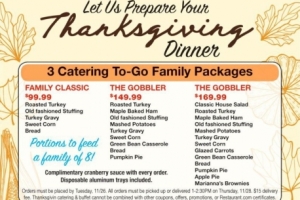 Don't want to cook on Thanksgiving? Order one of Marianna's three Thanksgiving catering packages! Click here for details. Order must be in by 11/26 and must all be picked up or delivered by 11/28 between 1pm-2:30pm. Delivery fee is $15.