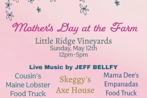 Come hang out at the farm with mom for Mother's Day. Cousins Maine Lobster, Skeggy's Axe House, Mama Dee's Empanadas and the music of Jeff Bellfy!