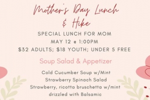 Celebrate mom with a delicious lunch and then hike it off! Complete with soup, appetizers, main course and desserts. You can also bring your own wine to enjoy.