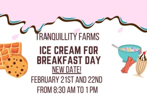 Join Tranquillity Farms to celebrate the weekend with ice cream for breakfast! Seating will be available in the greenhouse and pavilion. The menu is expanded with new items this year.