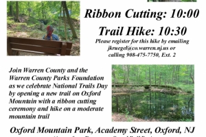Ribbon cutting will be at 10am followed by a hike on the new trail. Warren County’s Naturalist Jennifer Correa-Kruegel will be on hand to provide nature interpretation, as well as a stream study. The park is located on Academy Street, Oxford, across from the emergency squad building.