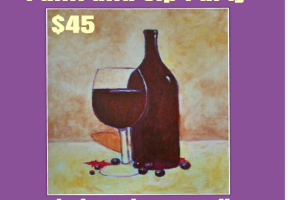Bring your friends for a fun night of painting! Local artist and instructor, John Nebiolo will host one of his popular Paint & Sip parties. The evening includes your canvas, paint, instruction, sampling of 5 wines and an etched wine glass to keep. Wine will be available by the glass or bottle for purchase as well. Cost is $45. Please register directly with John for this class at:register@johnnebioloart.com.