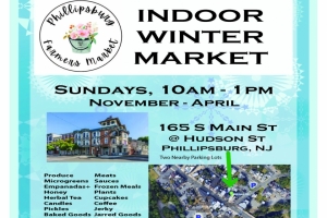 The Phillipsburg Farmers Market has moved indoors for the winter, open on Sundays November - April, “snow or shine.” Customers can continue to buy their favorite fresh and local foods while supporting community vendors. Parking is available at metered spaces on the street, in nearby lots with payment kiosks, and across from Joe’s Steak Shop (free).