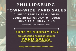 Come explore Phillipsburg while finding some treasures along the way! Anyone is welcome to stop in at Shappell Park Farmers' Market on Sunday and set up a table to sell some things.