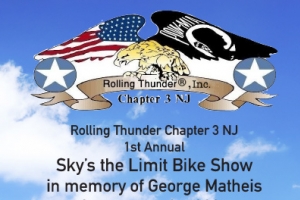 Rolling Thunder Chapter 3 NJ sponsors the show, in memory of George Matheis, at the Warren County Hot Air Balloon, Fun & Games Festival. Hop on your motorcycle and head over to show off your bike and help raise money for the chapter. Registration is 3-5pm with judging and awards at 7pm. $10 per bike. Categories include Best Classic, Best Custom, Best Touring, Best Chopper, Best Trike, and People's Choice.