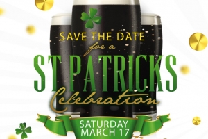 Food from 6-9pm and music from 7-10pm by A-Plus DJs. Enjoy Irish dishes including soda bread, potato bread, an Irish Cheese Board, Corned Beef & Cabbage, Irish Bangers, Shepherd's Pie, traditional Irish Dessert Display, a Guinness Float Station and more!