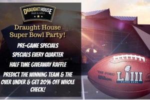 Party at the Draught House with pre-game Super Bowl specials, quarterly specials and raffles at half time!