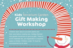 Children learn about succulent plants and their care before creating two holiday-themed mini-garden terrariums to give as gifts. There is a $10 materials fee. Pre-registration required, as space is limited. Children under 10 must be accompanied by an adult. Sponsored by Rutgers Cooperative Extension of Warren County.