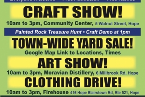 Craft Show (Hope Community Center, 5 Walnut Street, 10am-3pm): Free admission to more than 20 vendors featuring sustainable, local crafted items in one of Hope’s historic stone buildings. Enjoy the 1pm demonstration recycling cards into gift boxes. All visitors receive a free raffle ticket. Ongoing “treasure hunt” for artisan-painted rocks that day.