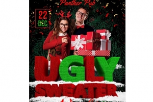 Put on your best ugly sweater, come dine at Panther Pub and be entered to win a $25 Panther Pub Gift Card, a signature Panther Pub Pint Glass and a complimentary House Potato Chip appetizer. One entry per person. Three of these packages will be given away.