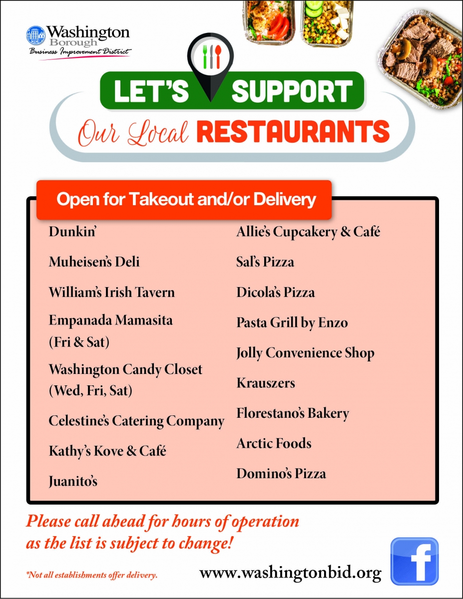 WASHINGTON BID URGES SUPPORT FOR LOCAL RESTAURANTS WITH YOUR TAKEOUT ORDER