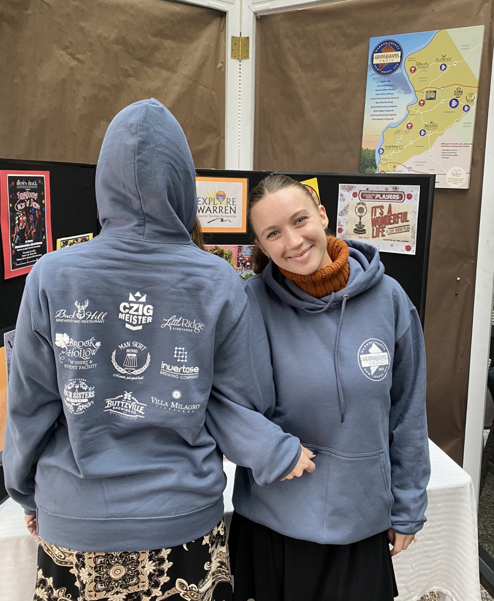 From January 1 to April 30, 2024, if you visited all nine participating wineries and breweries on the Warren County Grains & Grapes Trail and obtained three stamps per location, you earned a custom hoodie with the official Grains & Grapes logo printed on the front and the brewery and winery logos on the back.