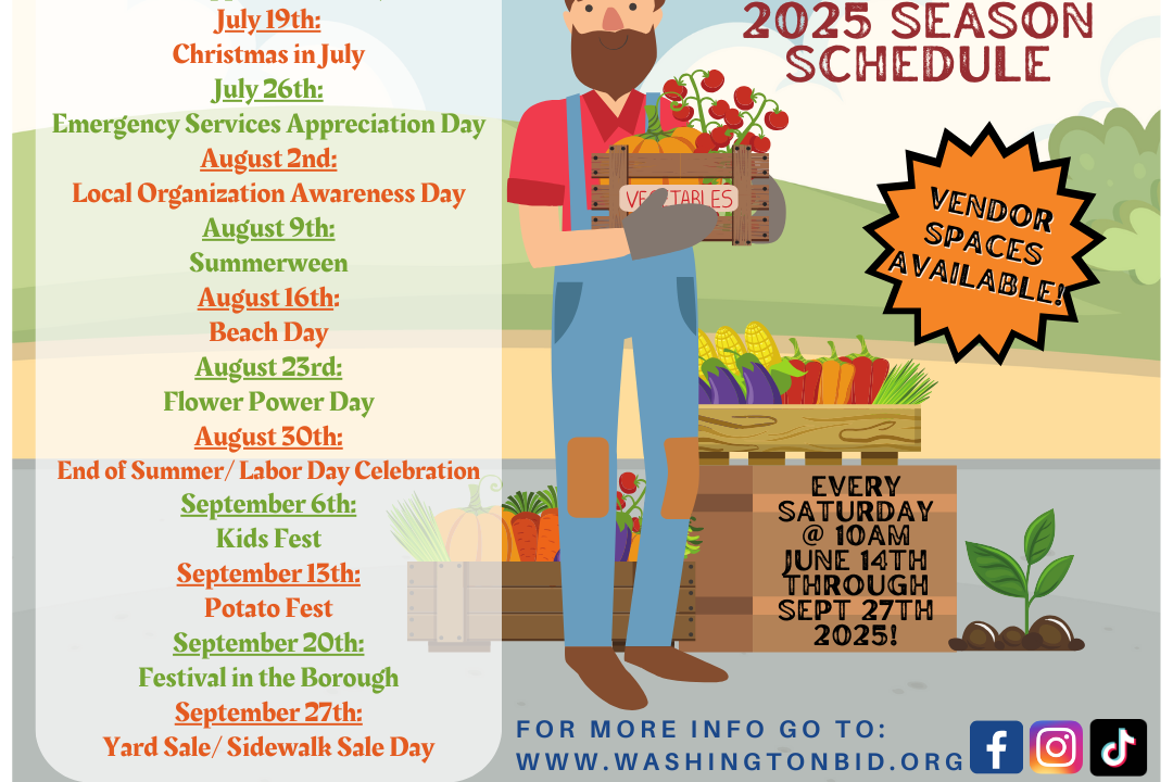 Come down to the market for fresh-picked produce, farm-fresh eggs, fresh-cut flowers, local honey, handmade soaps, jewelry, crafts and more. Weekly themes, entertainment and giveaways! Meet your friends and neighbors and support family farms and local businesses! Runs every Saturday, 10am-2pm, mid-June through the end of September.